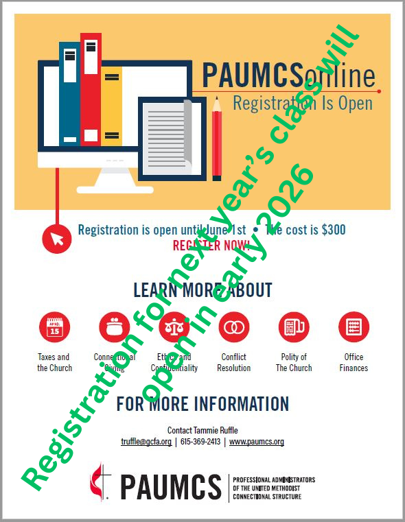 All United Methodist church administrators, administrative assistants, general agency office personnel, episcopal, district and annual conference office personnel are encouraged to enroll.